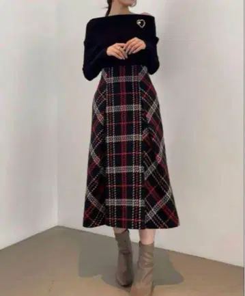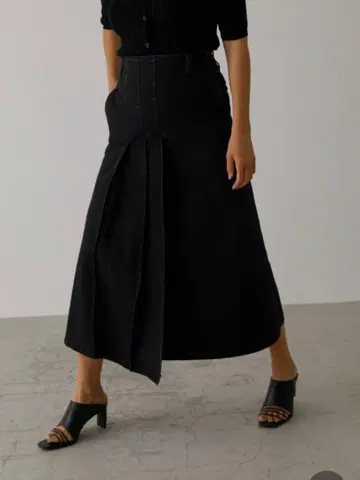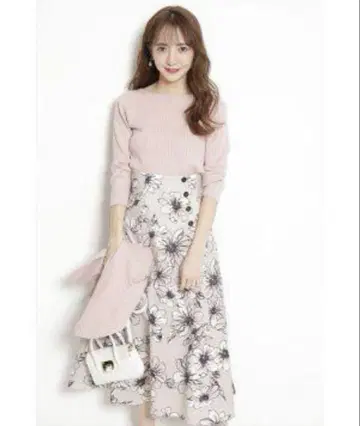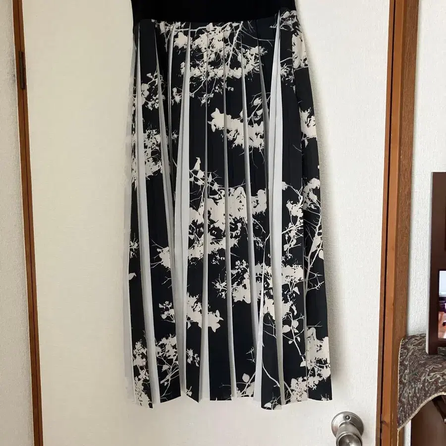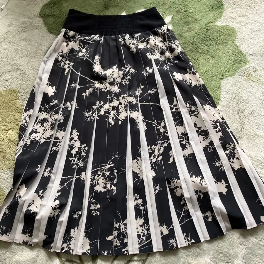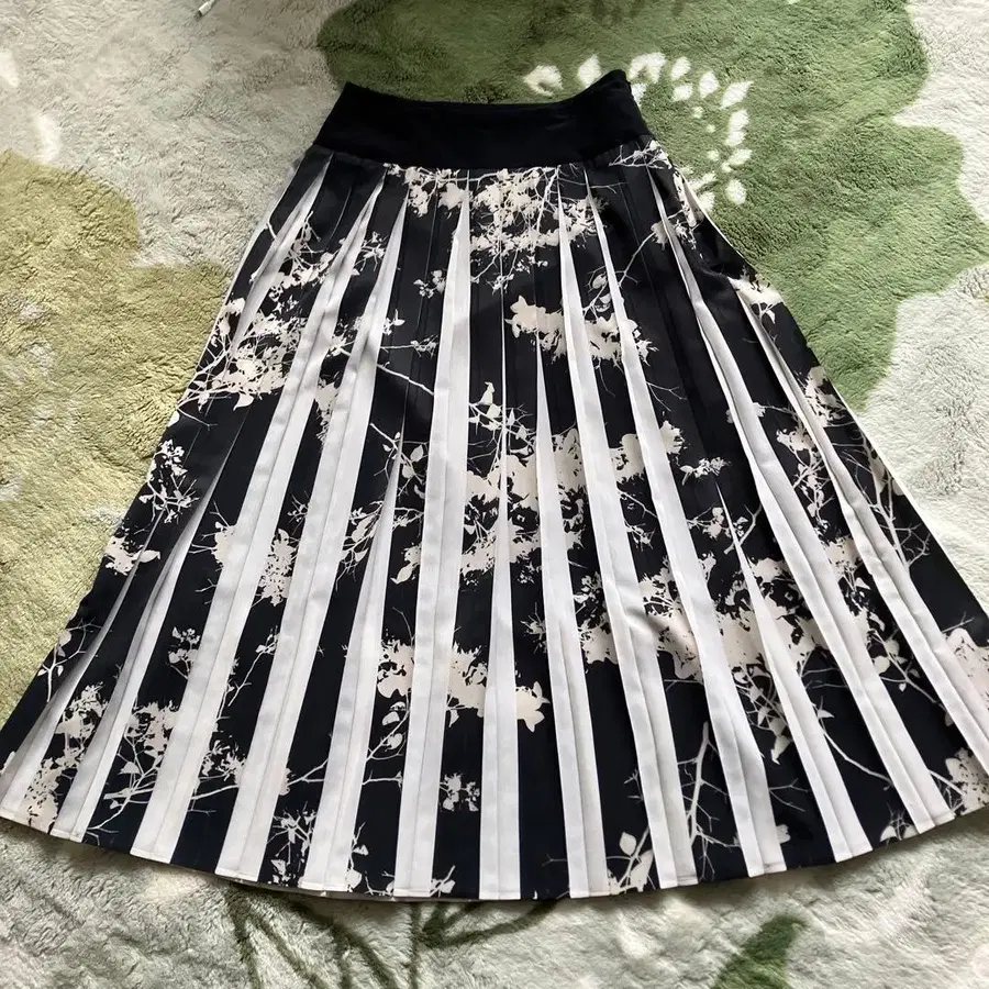 모라비토 프리미어 꽃무늬 플리츠 스커트 블랙과 화이트