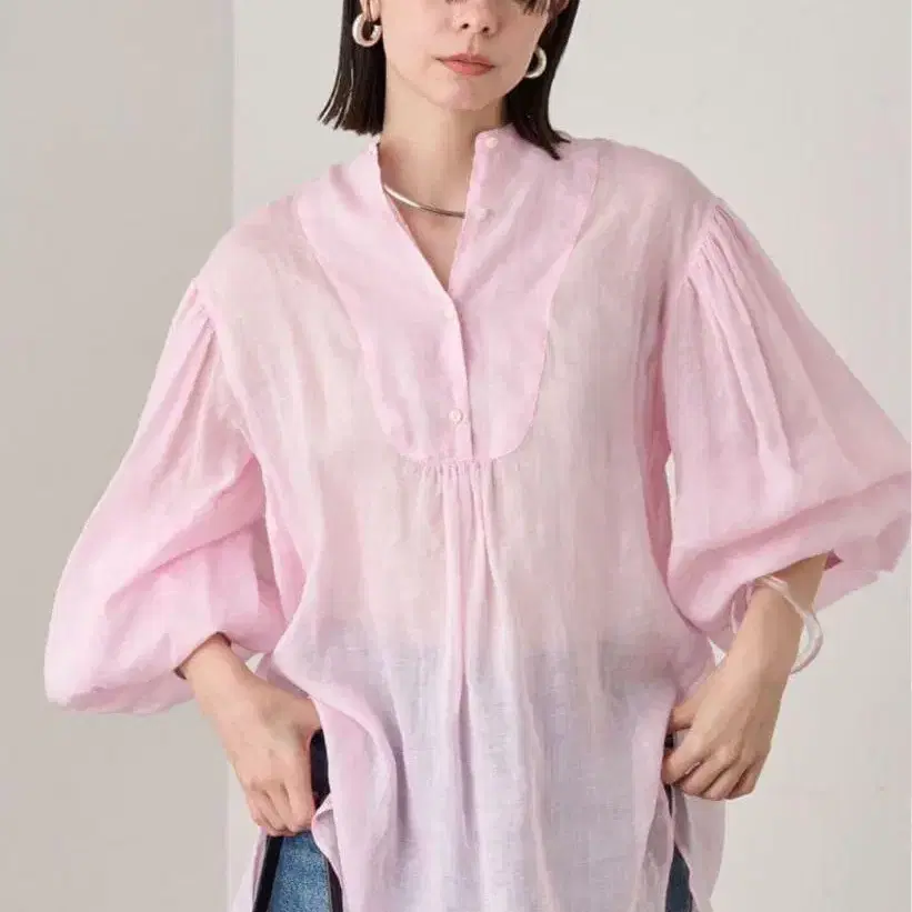 새상품 Loungedress 린넨 개더 튜닉 라운지 드레스 핑크