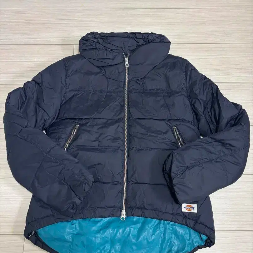 네이비 다운 자켓, 터콰이즈 안쪽이 특징. - 브랜드: Dickies - 사이즈: M - 색상: 네이비 - 안쪽 색상: 터콰이즈 - 디자인: 집업 - 포켓: 사이드 포켓 포함 방문해 주셔서 감사합니다.
