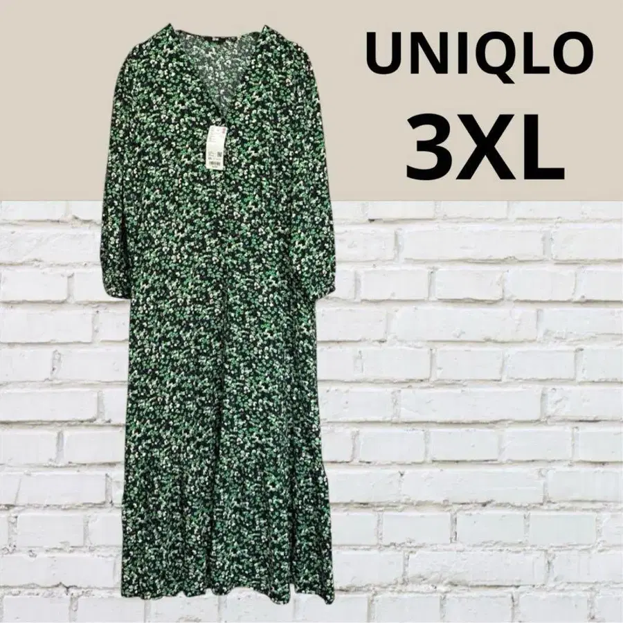 프린트 V넥 플레어 원피스 7부 소매 꽃무늬 유니클로 그린