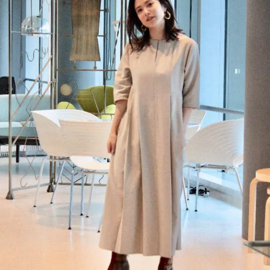 온/오프 겸용으로 활용 가능한 데일리 원피스. 유연하고 볼륨감 있는 2중직 소재를 사용했습니다. 굵은 턱이 포인트인 색 원피스. 프론트는 스키퍼 디자인으로 내추럴하면서 여성스러운 넥라인을 연출합니다. 팔뚝을 자연스럽게 커버해주는 5부 소매이며, 소매 끝에는 트리플 스티치로 디자인 포인트를 주었습니다.