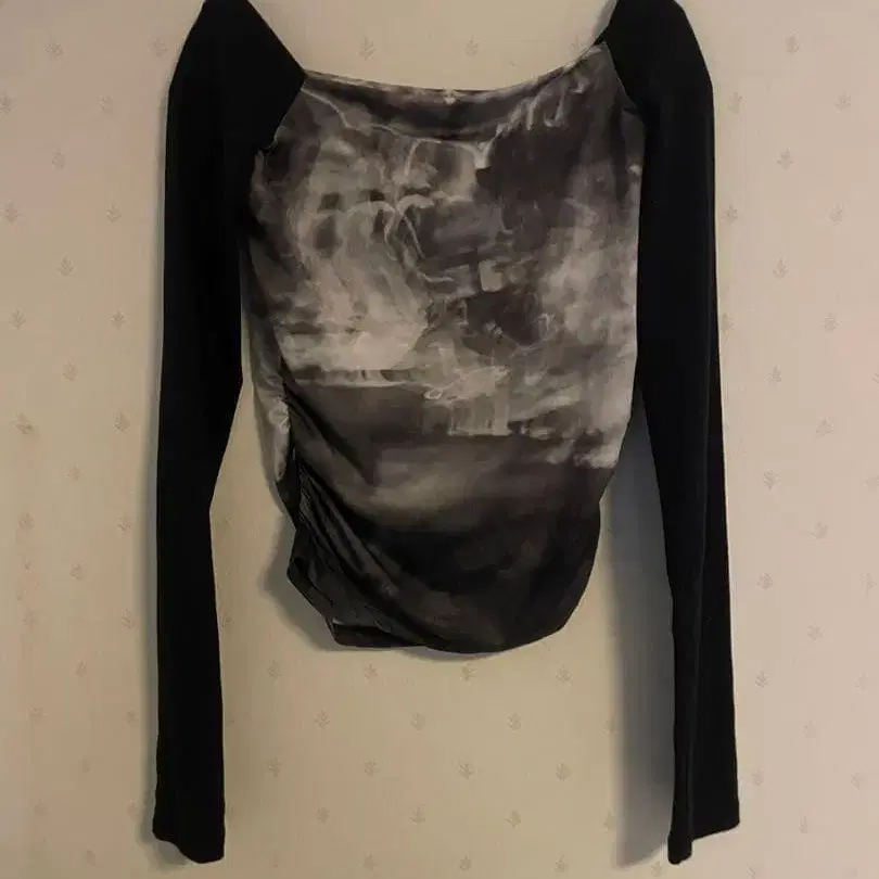 블랙과 그레이의 그라데이션이 특징인 드레이프 디자인의 긴팔 상의. - 색상: 블랙과 그레이 그라데이션 - 스타일: 드레이프 디자인 - 특징: 사이드에 개더 있음 - 소매 길이: 긴팔 방문해 주셔서 감사합니다.