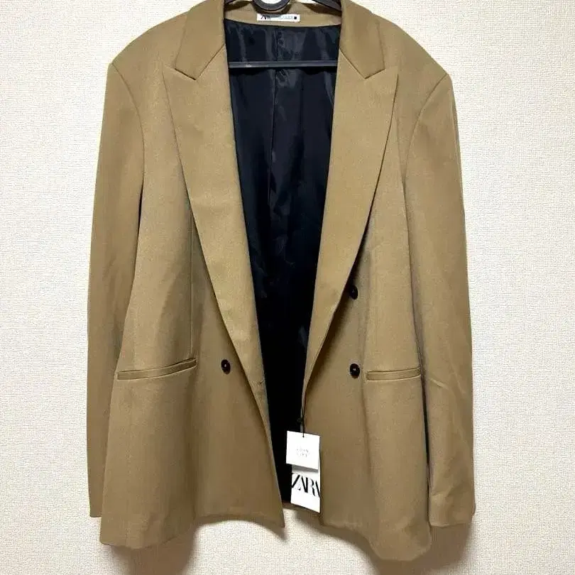• ZARA 베이지 더블 브레스트 테일러드 자켓