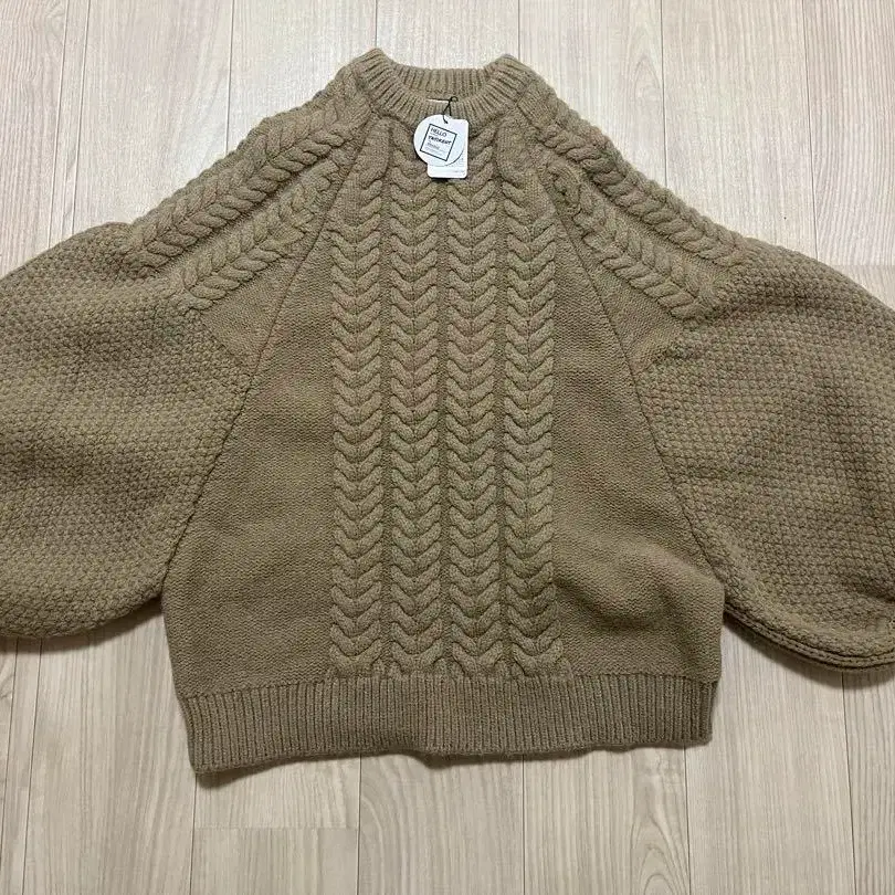 TASIKENT 케이블 니트 벌룬 소매 스웨터 베이지