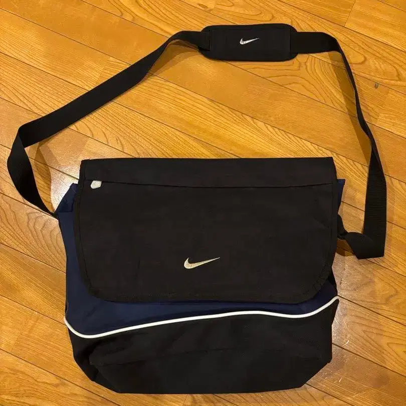 Nike 로고가 돋보이는 심플한 메신저 백입니다. 블랙과 네이비 컬러 배색이 특징입니다. 2000년대 제품으로 추정되며, 큰 얼룩은 없습니다. 노클레임, 반품은 불가하오니 양해 부탁드립니다. - 브랜드: Nike - 색상: 블랙/네이비 - 스타일: 메신저 백 - 특징: 로고 자수 방문해 주셔서 감사합니다.