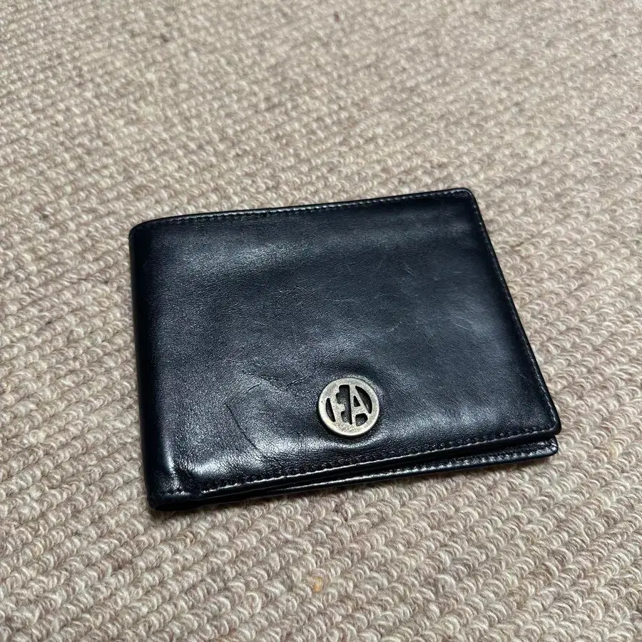 ARMANI 블랙 가죽 접이식 지갑