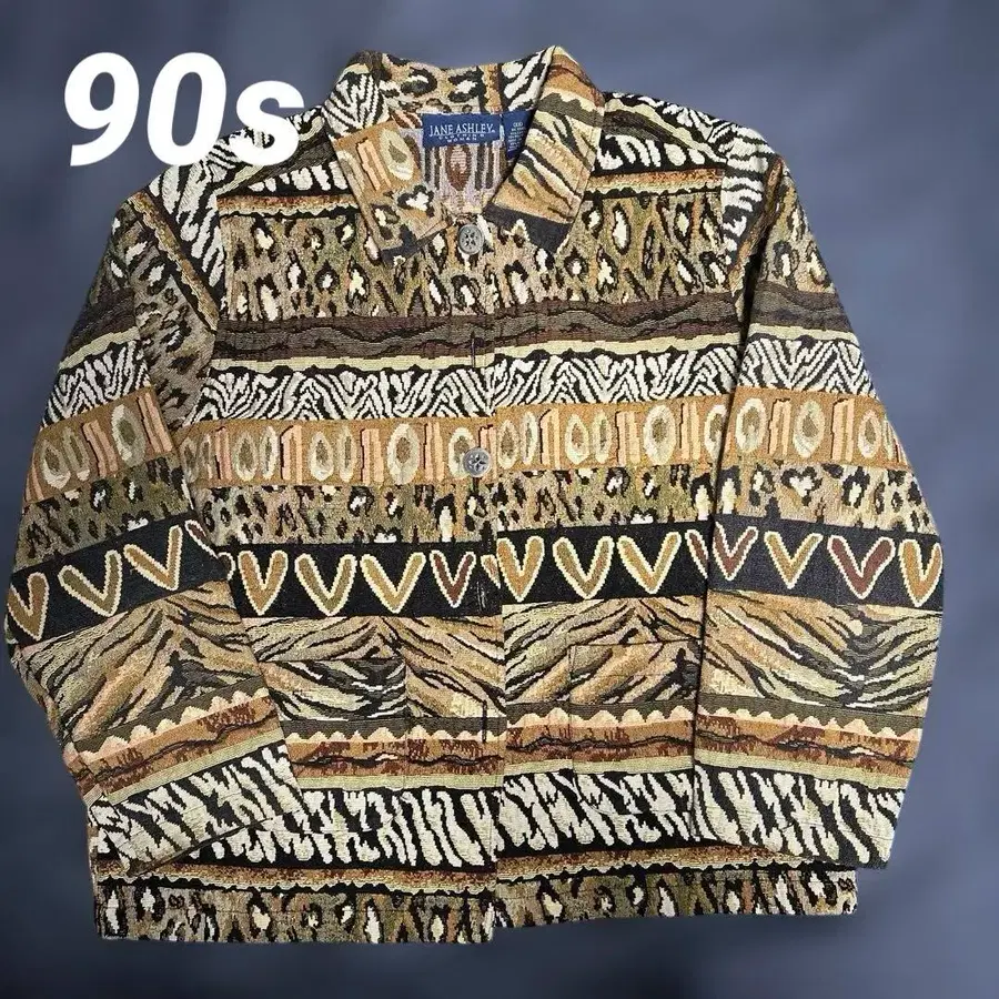 90s 빈티지 올 패턴 애니멀 무늬 금속 버튼 레오파드 고블랑