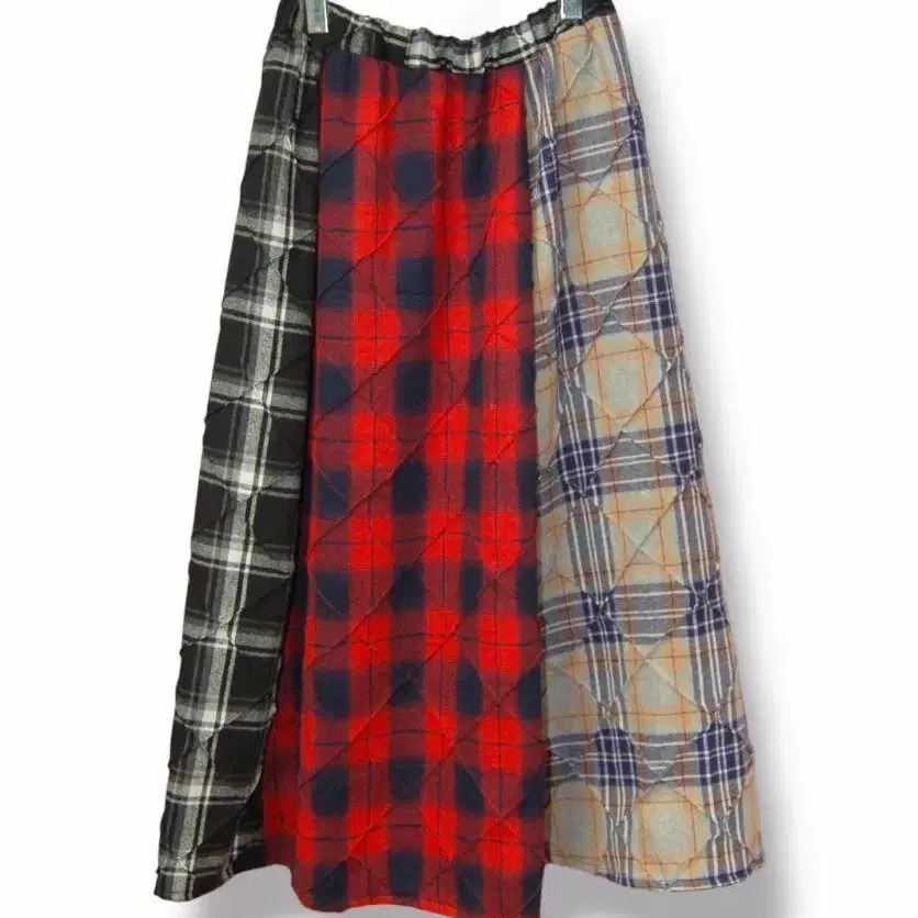 • 타탄 체크 믹스 밑단 개더 롱 스커트