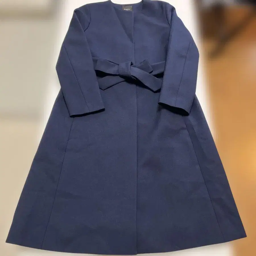 데미-럭스 네이비 롱 코트 허리 리본 포함