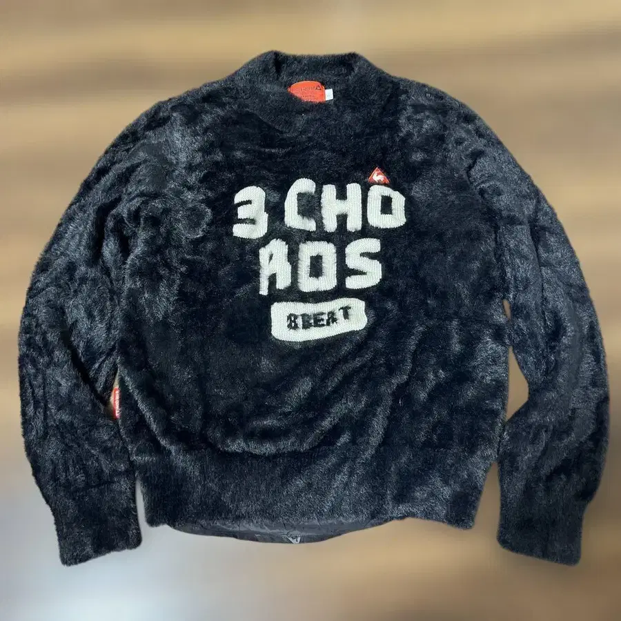 플리스 소재의 블랙 스웨터입니다.