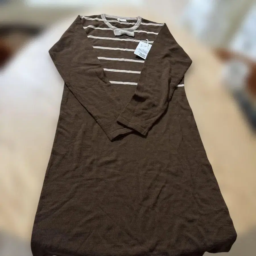 보타이 포함 브라운 스트라이프 니트 원피스 옵티 미사용 새상품