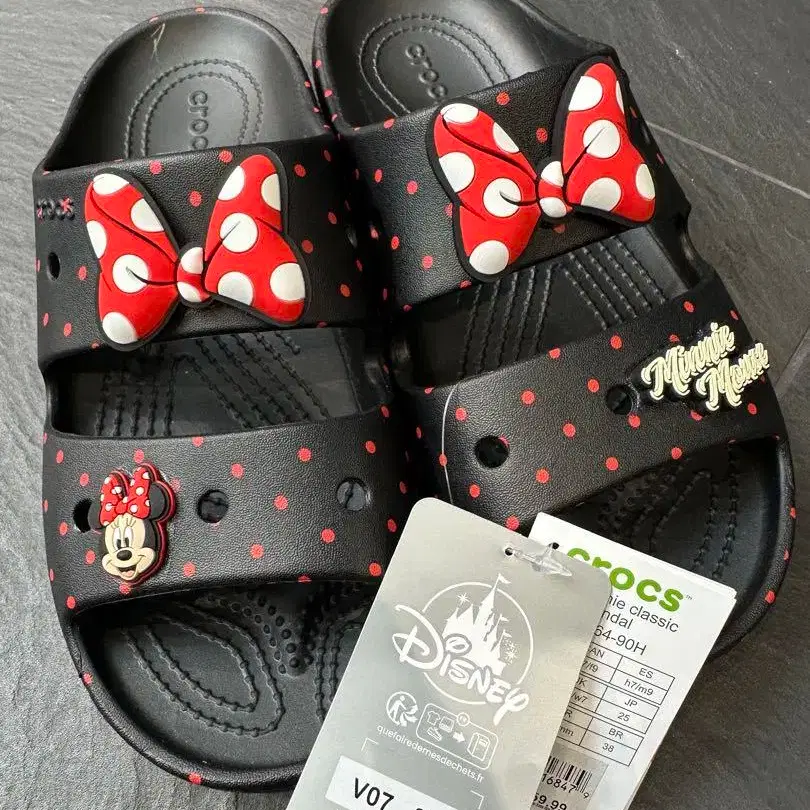 미사용 새상품 crocs 미니 마우스 도트 무늬 샌들 25cm