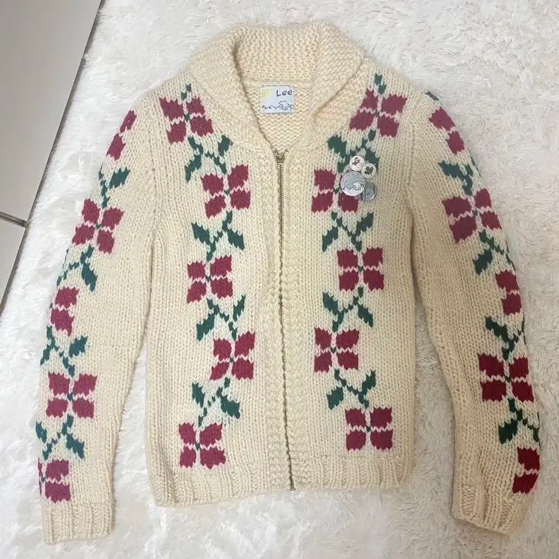 Lee 빈티지 꽃무늬 니트 가디건