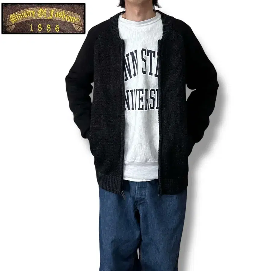 00s 아크릴 멜란지 니트 미들 게이지 집업 가디건