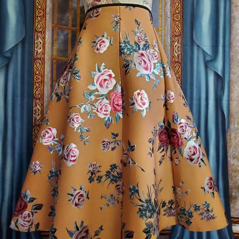 수입 셀렉트 구매 상품 1점 한정! 본딩 스커트 허리 64cm~69cm 정도 대응 가능 ※ 드레스 크루즈에서 취급하는 본딩은 각각 허리와 길이가 다양합니다. 실측 사이즈로 확인해 주세요(^^)/ ---------------- ● ※ 사진 속 상의는 촬영용으로 포함되지 않습니다. ♥️ 본딩 스커트는 파니에 없이도 아름다운 플레어 라인을 멋지게 연출해 줍니다 ♥️ ※ 그리고 탄탄하고 따뜻한 소재는 가을, 겨울, 봄까지 3시즌 동안 길게 활용 가능 ※ 베이스는 고급스럽고 성숙한 베이지 색상. 이런 부드러운 베이스에 반짝이는 실버 계열 호일 프린트. 수많은 반짝이는 장미를 얹어 어른스러운 광택 스커트. 가을부터 봄까지 3시즌을 고급스럽고 화사하게 물들입니다. 엘레강트한 종아리 기장. 개성 넘치고 아름다운 본딩 스커트. 해외 구매 1점 한정 상품으로 누구와도 겹치지 않는 특별함까지 (*^ー゜)ノ ※ 본딩 소재로 아름다운 플레어를 연출하는 디자인이므로 끝 처리는 단처리입니다. ※ 호일 프린트는 프린트 특성상 라인이 약간 들어가 있을 수 있으며, 약간의 접힘 주름은 양해 부탁드립니다. 사이즈 ● 허리 64cm ~ 69cm 정도 대응 가능 허리 전체 밴딩 사양 실측 허리 밴딩을 늘리지 않은 상태 64cm 적정 허리 64cm~69cm 정도 총장 약 67cm 힙 플레어 실루엣 프리 착탈 지퍼 이용 가능 안감 없음 ※ 수입 제품 품질 이해를 위해 구매 전 프로필을 확인해 주세요. 드레스 크루즈 ※ 컬러 - 베이지 계열 패턴 - 꽃무늬 시즌 - 가을/겨울