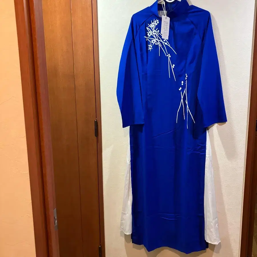 아오자이 꽃무늬 자수 롱 원피스 2XL 파랑 한정 가격