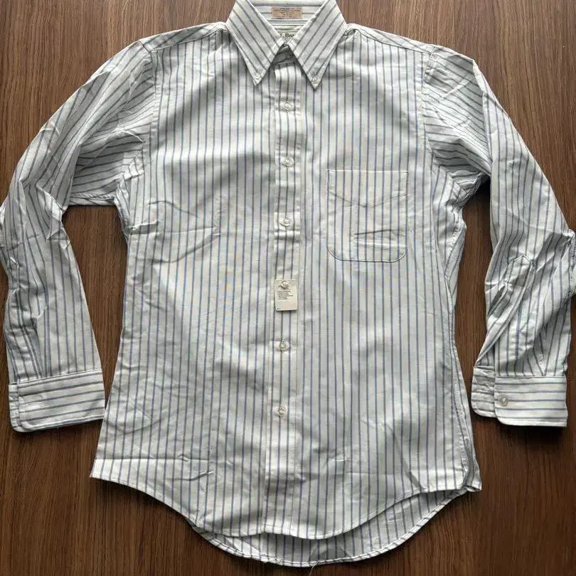 LL Bean 옥스퍼드 셔츠 사이즈 14.5/32, 미국 사이즈 M, 일본 사이즈 L 80년대 데드스탁 Made in USA 색상: 화이트에 블루, 블루 스트라이프 Cotton 100% 종이 케어 택 포함 어깨 너비 44, 가슴 너비 54, 소매 길이 60, 기장 78cm