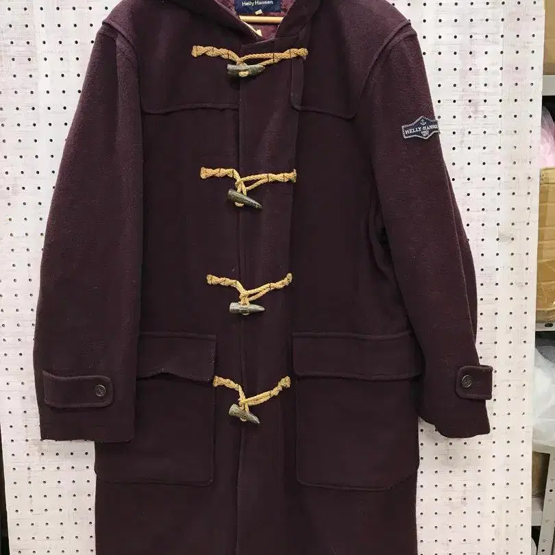 레트로 Helly Hansen 구제 의류 와펜 후드 부착 더플 코트