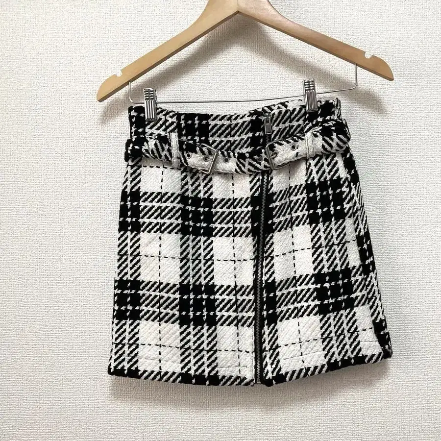 새상품급 자라 ZARA 스커트 사다리꼴 미니 집업 벨트 체크
