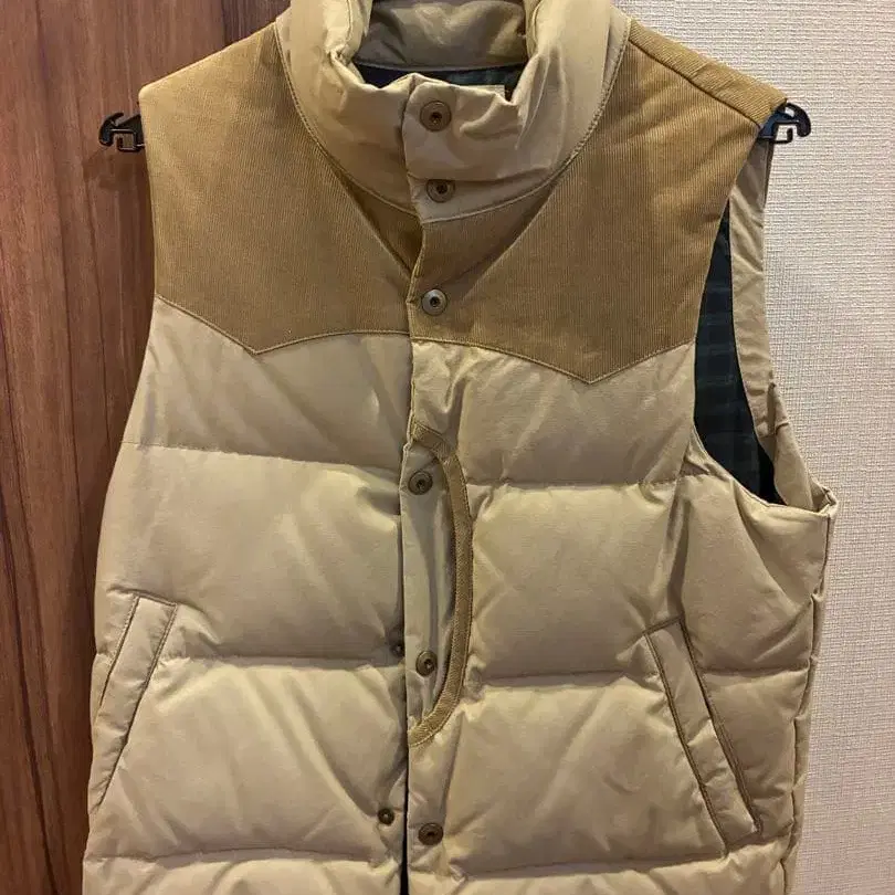 자동 번역되었어요. 원문보기나일론과 코듀로이 퀼팅 다운 베스트, 스탠드 카라와 체크 무늬 안감이 특징입니다.