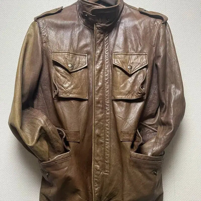 밀리터리 스타일의 브라운 가죽 자켓, - 색상: 브라운 - 디자인: 밀리터리 스타일 - 소재: 양가죽 AVIREX M 사이즈 어깨 너비 46 가슴 너비 49 기장 67 소매 길이 63 방문해 주셔서 감사합니다. AVIREX의 m-65 타입 가죽 자켓입니다. 양가죽으로, 부드럽고 가벼워 착용감이 좋습니다. 베이스가 보이기 시작하는 노후화가 있으며, 매우 멋집니다. 눈에 띄는 상처나 얼룩은 없지만, 오래된 제품이므로 이해하시는 분만 NCNR 부탁드립니다.