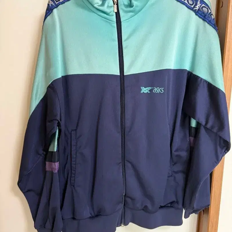 민트 그린과 네이비 색상의 집업 자켓, ASICS의 activwear line. - 브랜드: ASICS - 색상: 민트 그린/네이비 - 라인: activwear line - 디자인: 집업 자켓 - 스타일: 스포츠 저지 구제 의류점에서 구매, 유로 빈티지 제품으로 사이즈도 레어한 XL입니다. 방문해 주셔서 감사합니다.