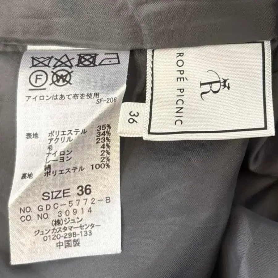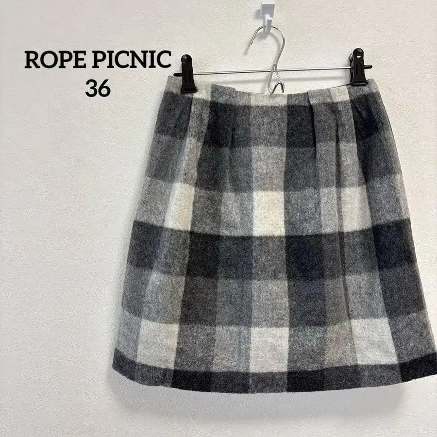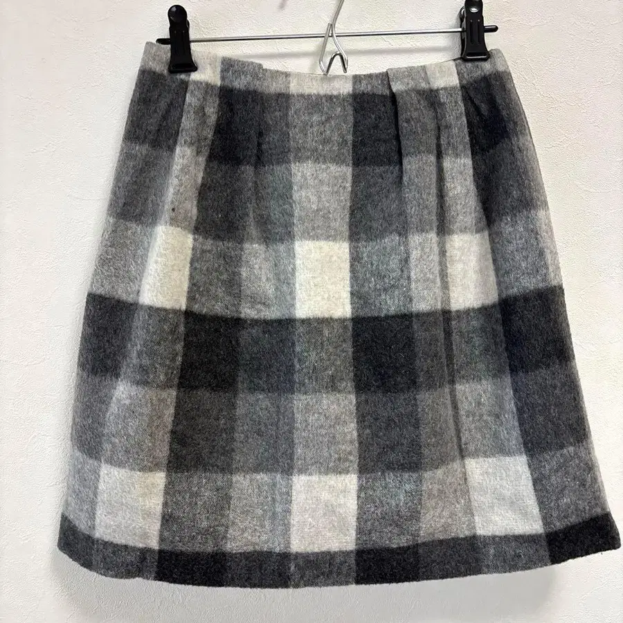 [ 특징 ] 폴리에스테르 아크릴 혼방, 안감 부착, 체크 무늬, 사다리꼴 실루엣, 사이즈 36