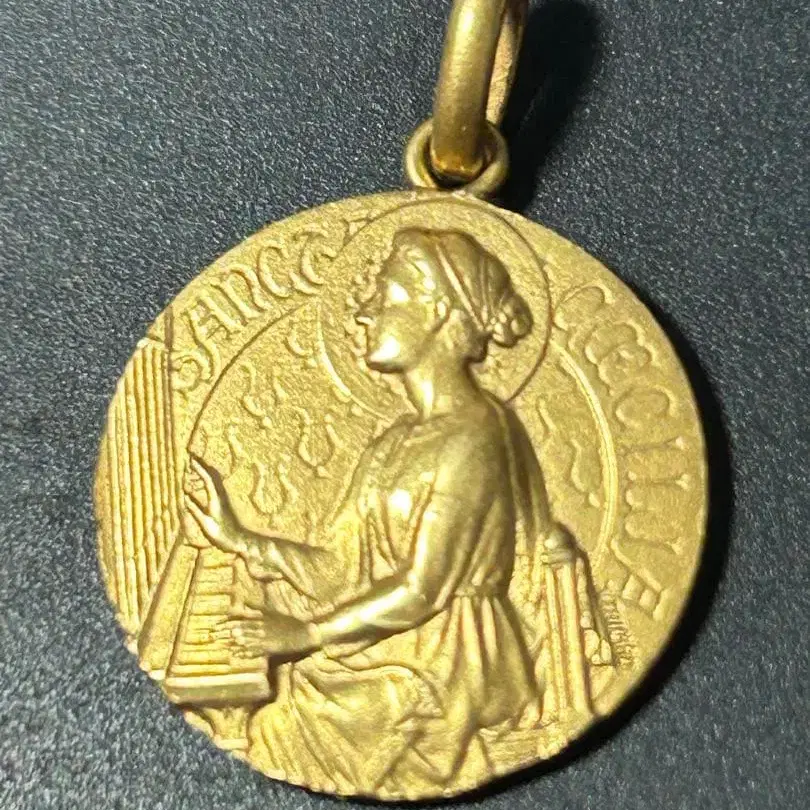 성 세실리아의 메달은 많은 작가들에 의해 만들어졌지만, 음악의 수호성인이기 때문에 악기를 연주하는 장면이 많으며, 이 Tricard의 세실리아 역시 오르간을 연주하고 있습니다.