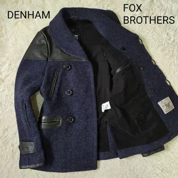 • 새상품급 덴함 폭스 브라더스 트위드 가죽 절개 P 코트 S 상당