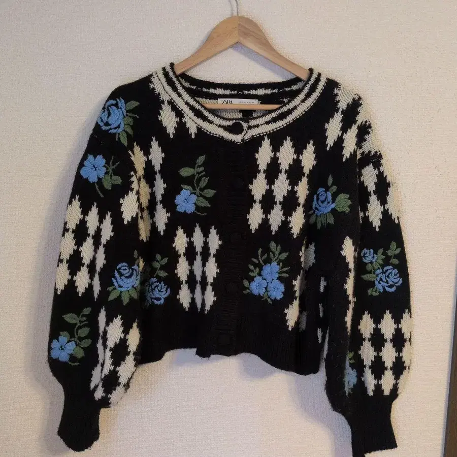 [ ZARA 완판템 ] 플라워 자카드 니트 꽃무늬 자수 숏 기장 가디건