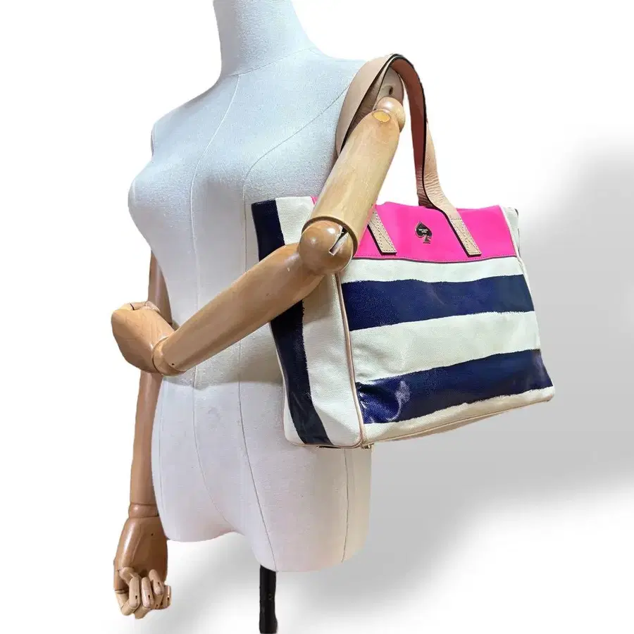 새상품급 케이트 스페이드 토트백 에나멜 줄무늬 핑크 화이트 네이비 69