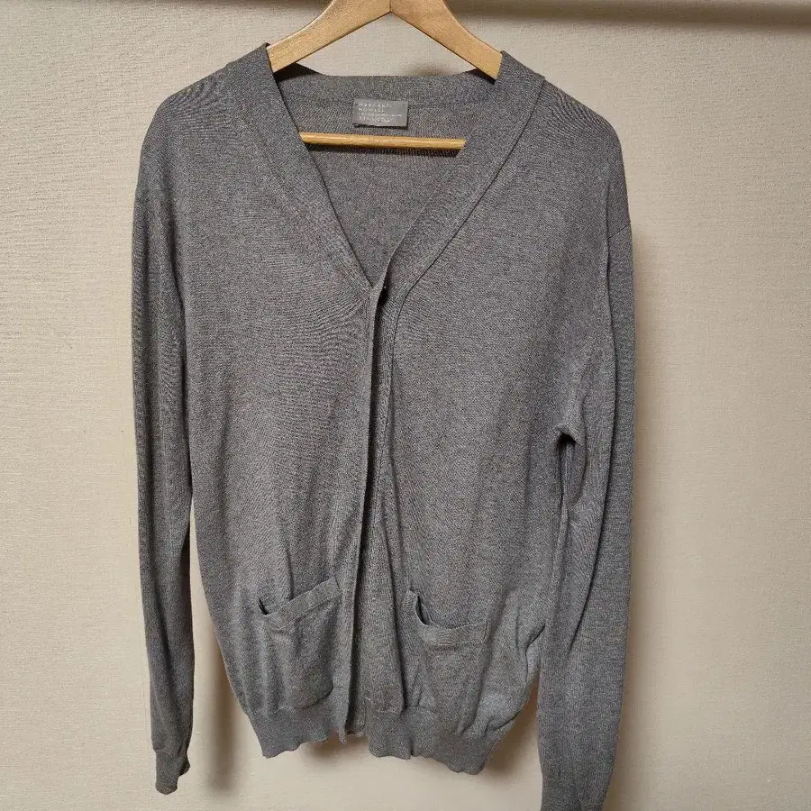 그레이 색상의 MARGARET HOWELL 가디건입니다. 존스메들리와의 콜라보 제품입니다. 포켓이 부착되어 있으며 심플한 디자인입니다.