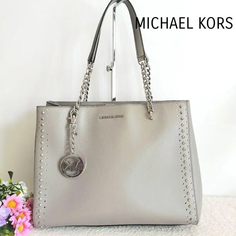 컨디션 최상 마이클코어스 체인 숄더백 그레이 실버 스터드