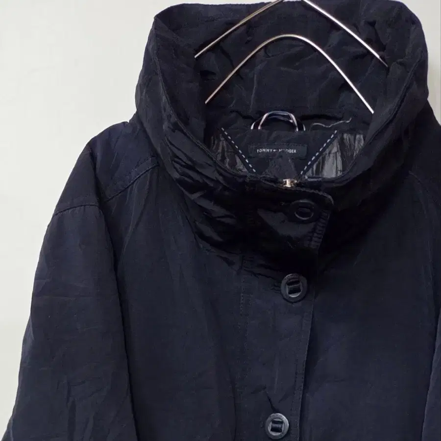 TOMMY HILFIGER 네이비 블루 모즈 코트 후드 부착
