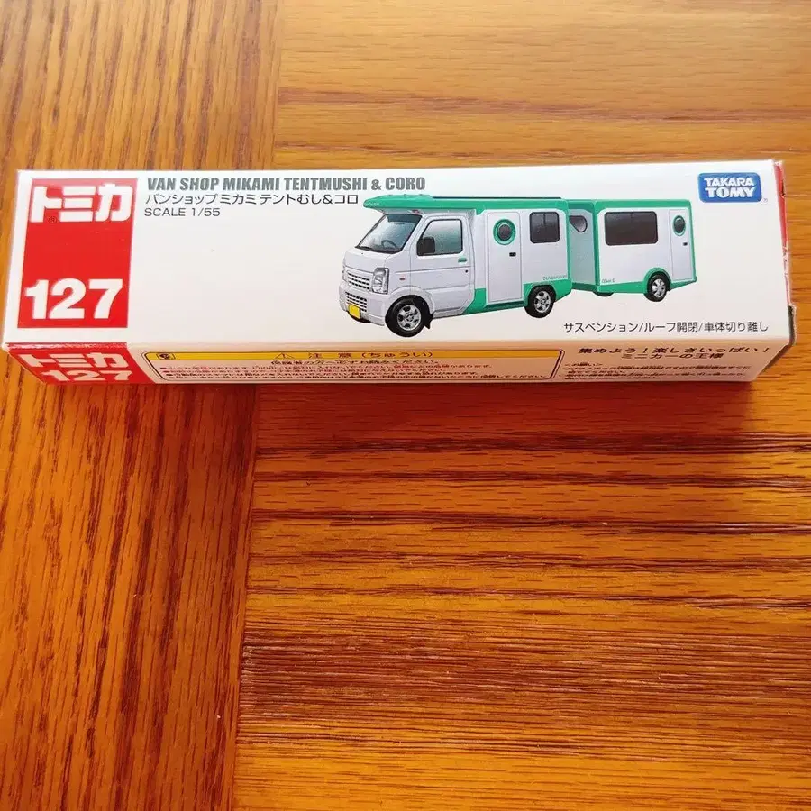 캠핑카 디자인이 특징인 토미카 미니카. - 브랜드: 토미카 - 모델명: 반샵 미카미 텐토무시 & 코로 - 스케일: 1/65 - 상품번호: 127 - 특징: 캠핑카 디자인 - 제조국: 중국 방문해 주셔서 감사합니다.