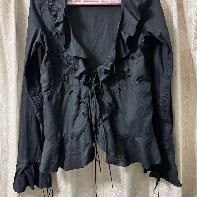 잉게보그 플라워 컷워크 프릴 겉옷 블랙 볼레로풍 상의