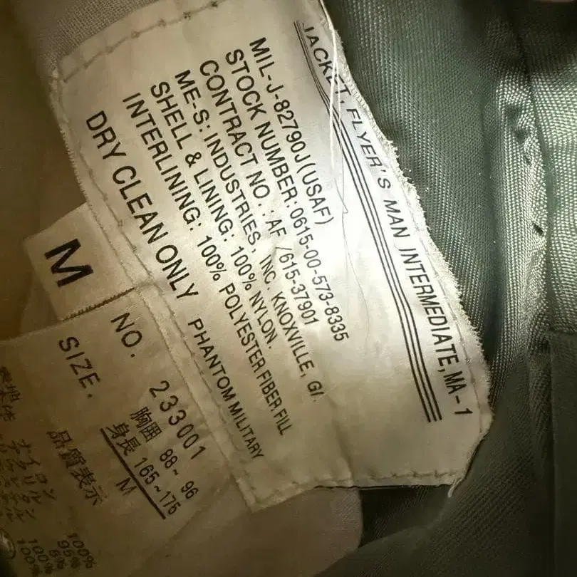 MA-1 플라이트 자켓 M 사이즈 올리브 그린
