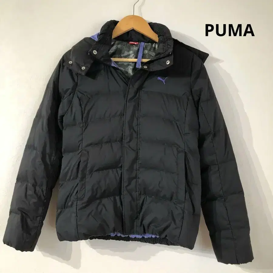 자동 번역되었어요. 원문보기PUMA의 블랙 퀼팅 다운 자켓, 안쪽의 카모플라쥬 패턴이 특징입니다.
