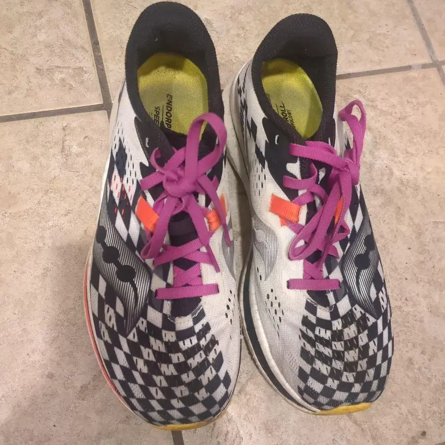 상품명: Saucony ENDORPHIN PRO 2 ( 써코니 엔도르핀 프로 2) 상품 설명: 써코니의 카본 플레이트 탑재 레이싱 신발 [ ENDORPHIN PRO 2 ] 입니다. 경량으로 고반발 쿠션이 특징이며, 스피드 주행이나 마라톤 레이스에 최적인 모델입니다. 나일론 플레이트 모델인 스피드 시리즈보다 더욱 강한 반발력으로 추진력을 느낄 수 있는 한족입니다. 주행 거리는 150km 정도입니다. 레이스에는 사용하지 않고 포인트 연습이나 빠른 거리 주행에 사용했습니다. 사이즈: 24.5cm 색상: 화이트 블랙 중고품에 이해가 있는 분만 구매 부탁드립니다. 방문해 주셔서 감사합니다.