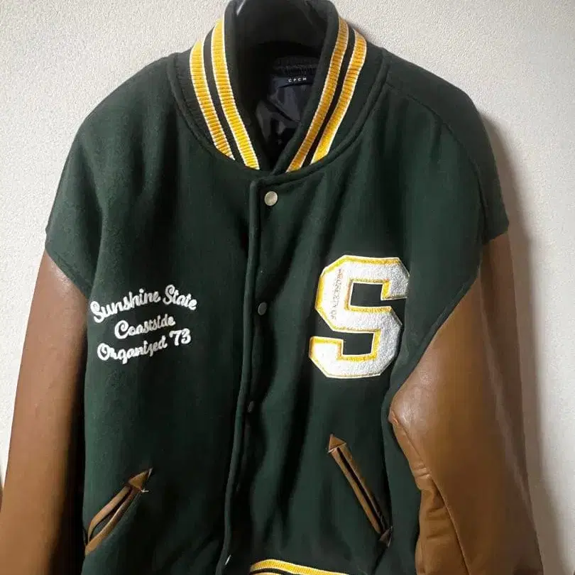 CPCM 바시티 자켓 L 사이즈 다크 그린/브라운