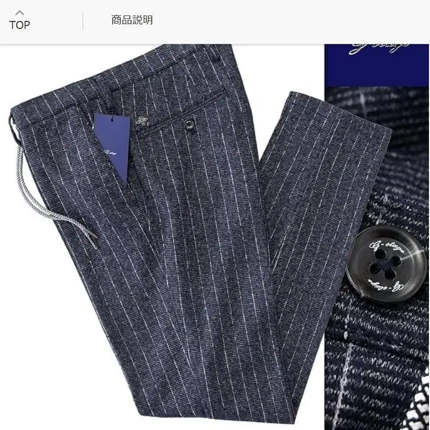 네이비 스트라이프 디자인의 슬랙스, 엘라스틱 허리와 드로우 스트링 포함 방문해 주셔서 감사합니다. 미사용 새상품 사이즈 L 48 86cm 색상 - 블루 계열 패턴 - 스트라이프 계절 - 가을/겨울 얼룩, 찢김, 냄새 등 - 없음 색상 - 네이비 계열