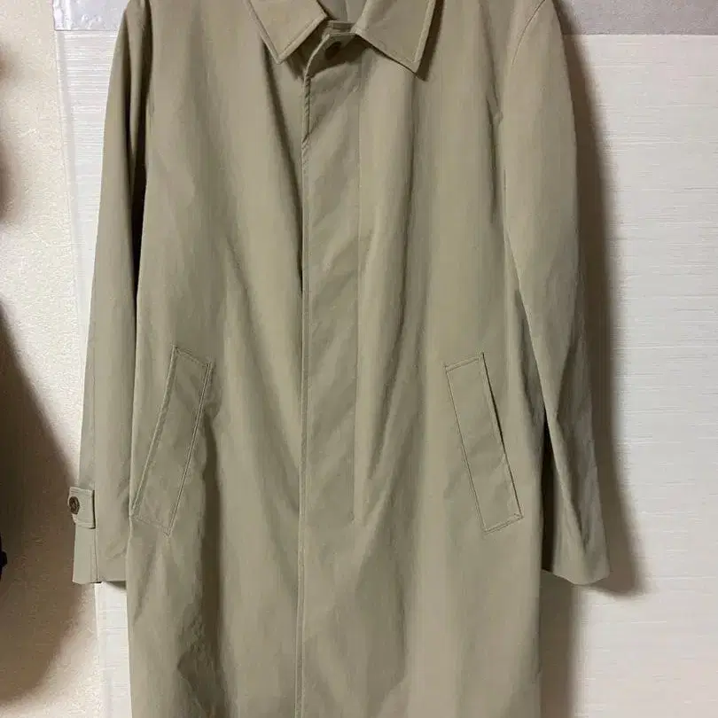 심플한 디자인의 베이지 트렌치코트, 스탠드 카라와 사이드 포켓 포함. - 색상: 베이지 - 디자인: 심플한 트렌치코트 - 포켓: 사이드 포켓 포함 - 옷깃: 스탠드 카라 - 소매: 긴팔 방문해 주셔서 감사합니다.