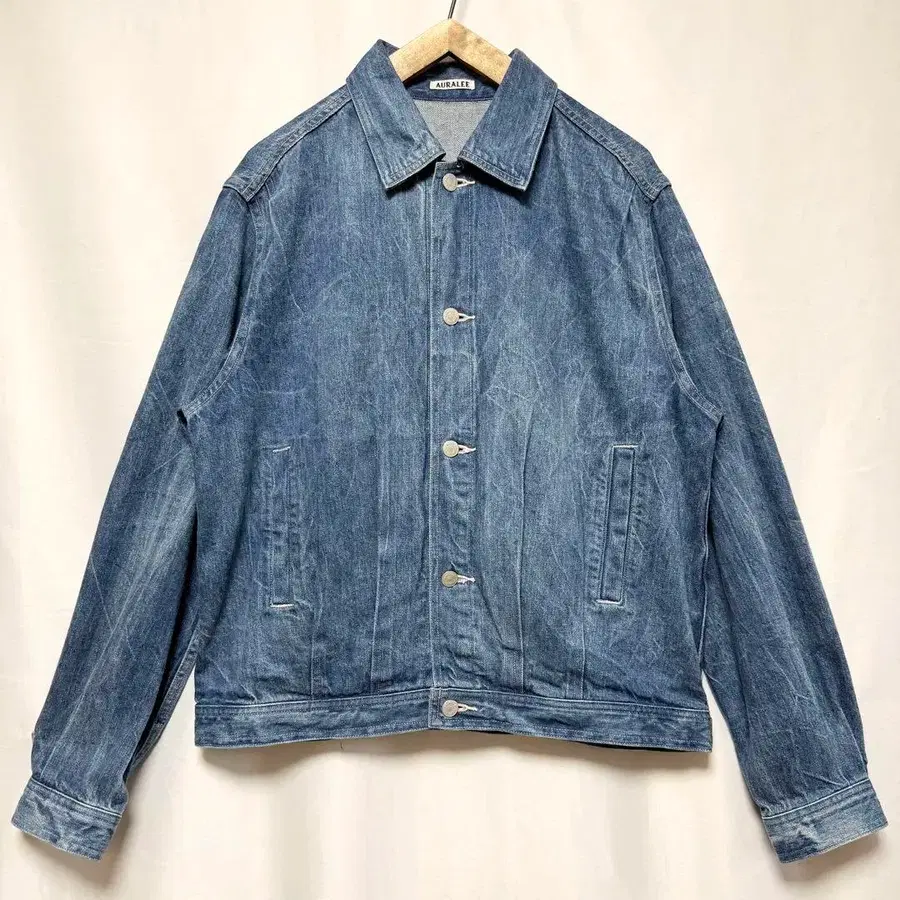 사이즈 4 !AURALEE 셀비지 라이트 데님 트래커 자켓