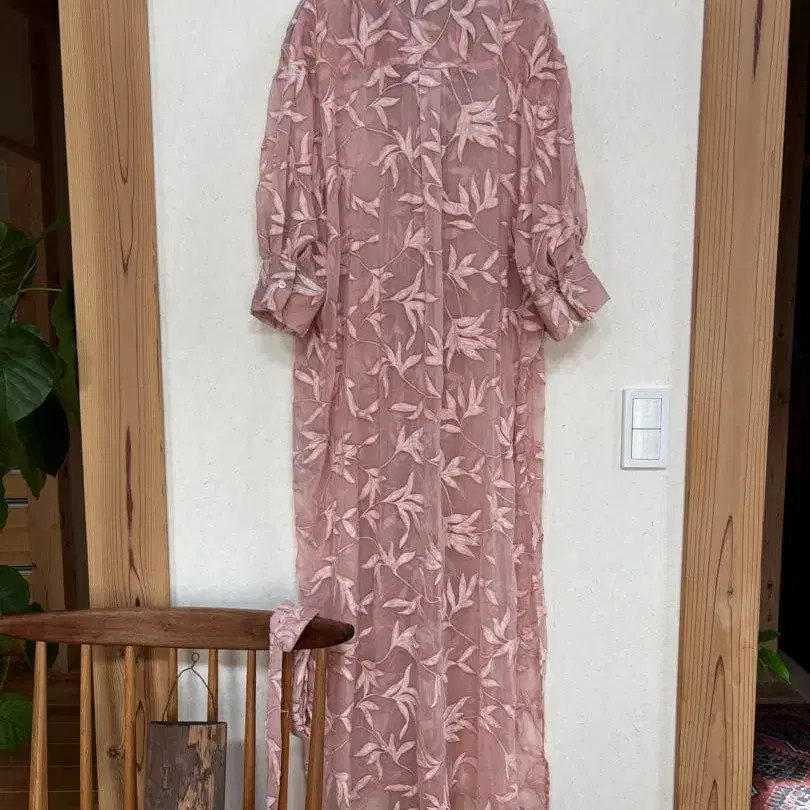 잎사귀 패턴 자수가 들어간 핑크 쉬폰 셔츠 원피스입니다. 사이즈는 S이지만, 평소 M 사이즈를 입는 저에게도 여유가 있습니다. 하나만 입어도 돋보이며, 가을이나 겨울에도 안에 껴입으면 활용할 수 있습니다. - 색상: 핑크 - 디자인: 잎사귀 패턴 자수 - 소재: 쉬폰 또는 경량 원단 - 버튼: 프론트 오픈 버튼 포함 방문해 주셔서 감사합니다.