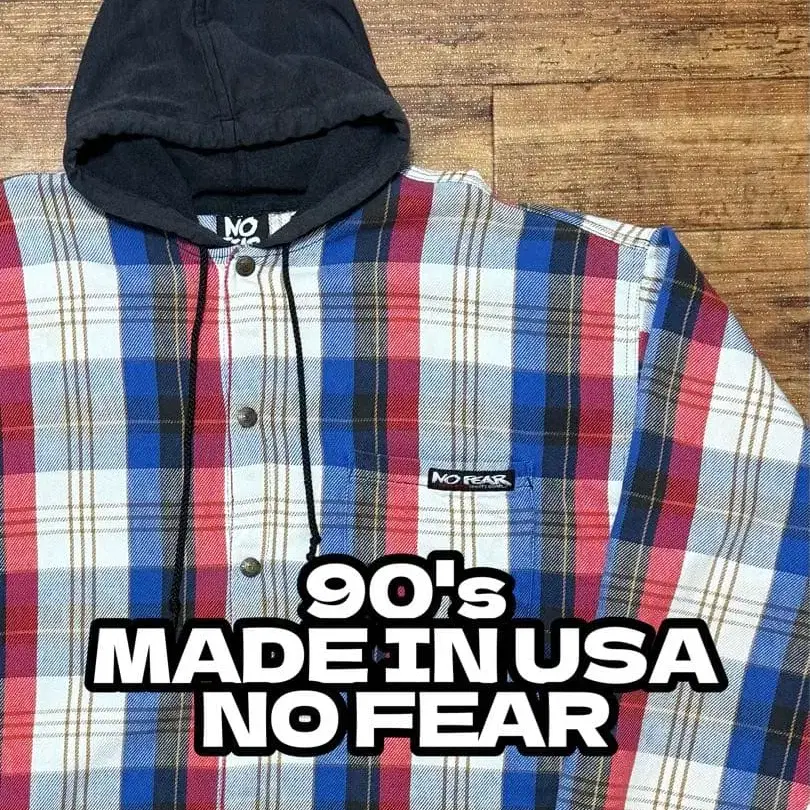 레어 컬러 NO FEAR 90s 빈티지 후드 체크 셔츠