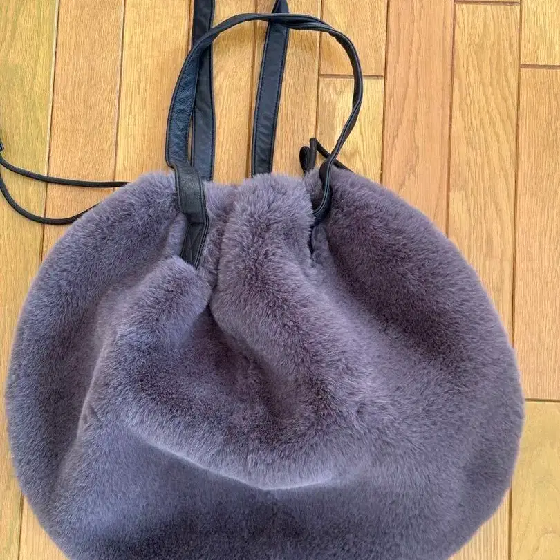 마리 인형의 에코 퍼 백입니다. 복조리처럼 입구를 조이면 동그란 모양이 되어 아주 귀여워요. 몇 번 사용했습니다. 색상은 그레이입니다. 손잡이는 천연 가죽이라고 하는데, 택 등은 없습니다. 잘 부탁드립니다.