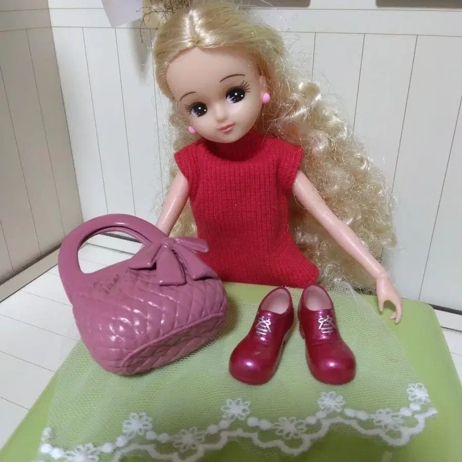 리카짱 캐슬 와인 컬러 신발과 퀼팅 백