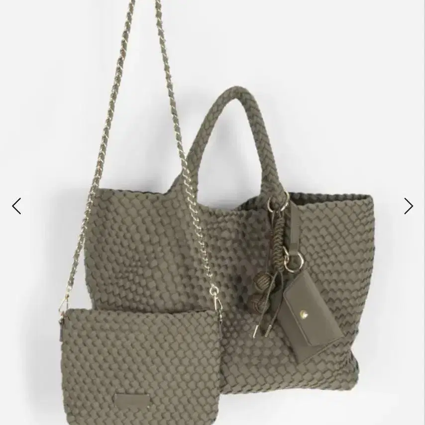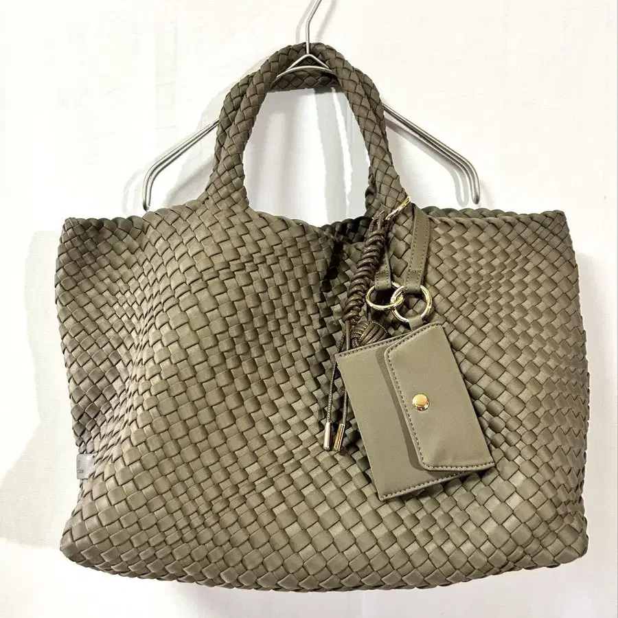 Grandtable 미니 파우치 포함 뜨개질 스퀘어 토트백 카키