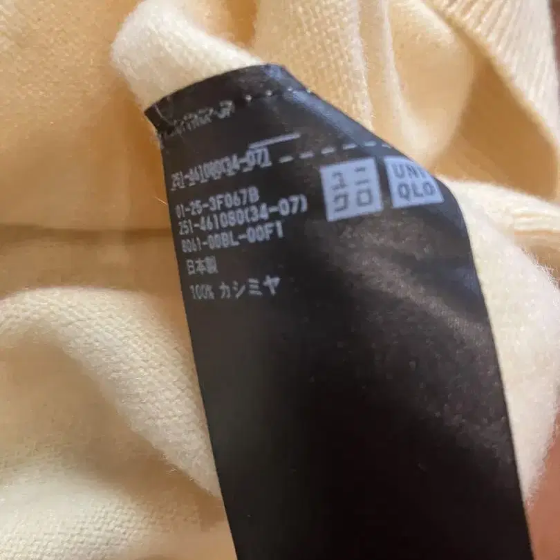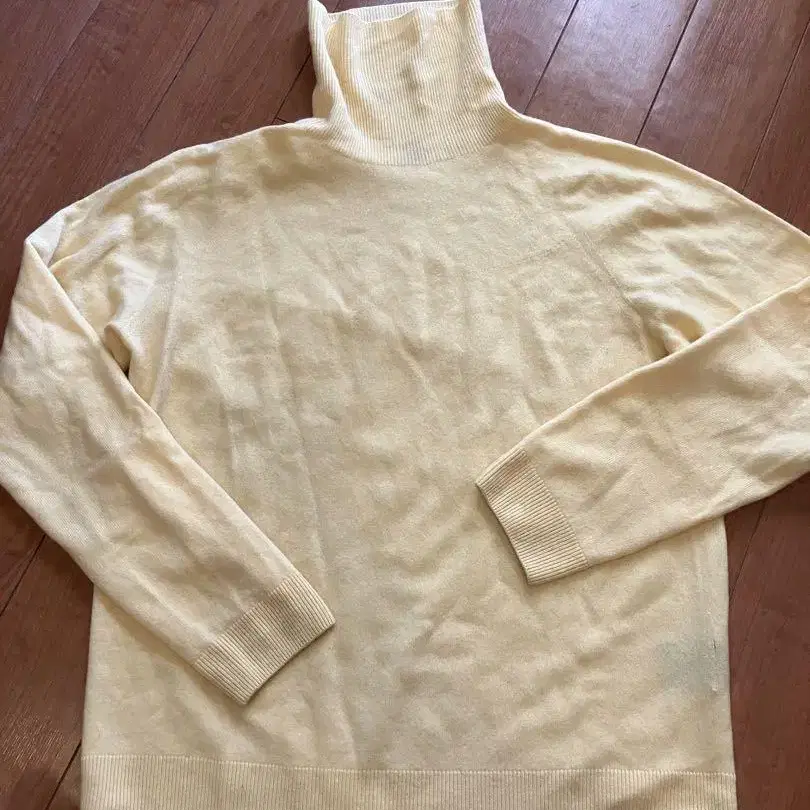 유니클로 캐시미어 100% 터틀넥 연한 옐로우 컬러 스웨터