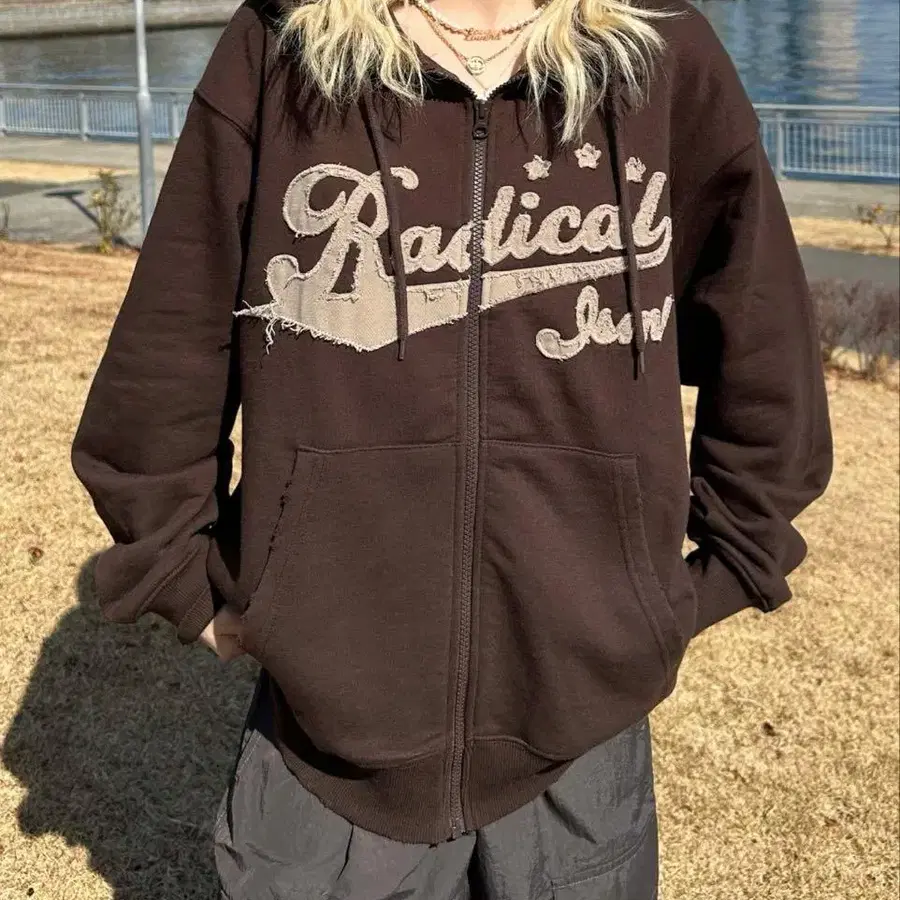 sedacle 프린지 로고 지퍼 후드티